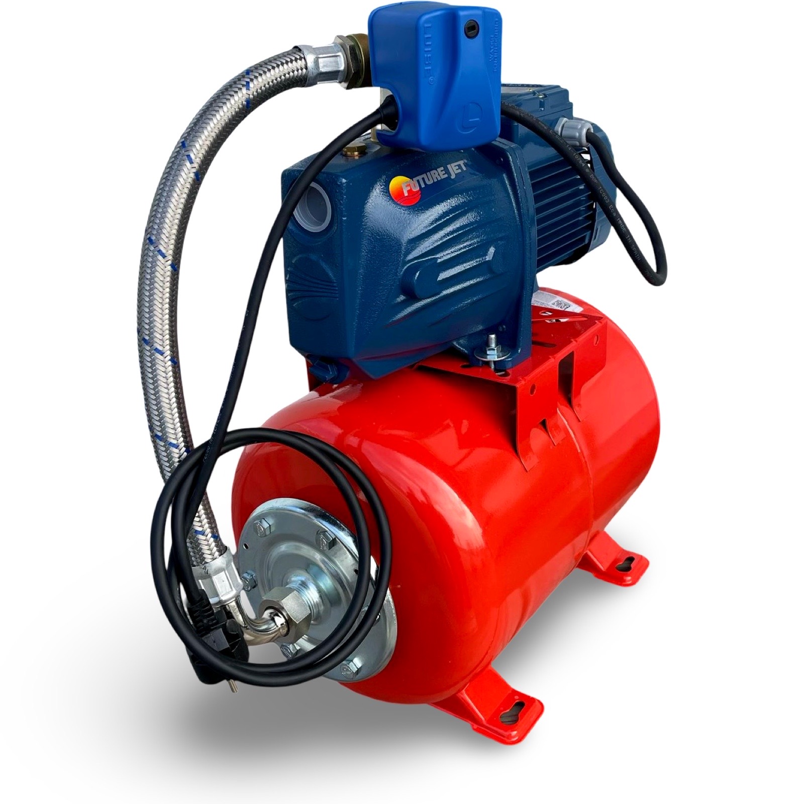Pedrollo Hauswasserwerk – Komplettset mit Future JETm 2A, 20L Druckkessel, PSG-1 Druckschalter & Manometer