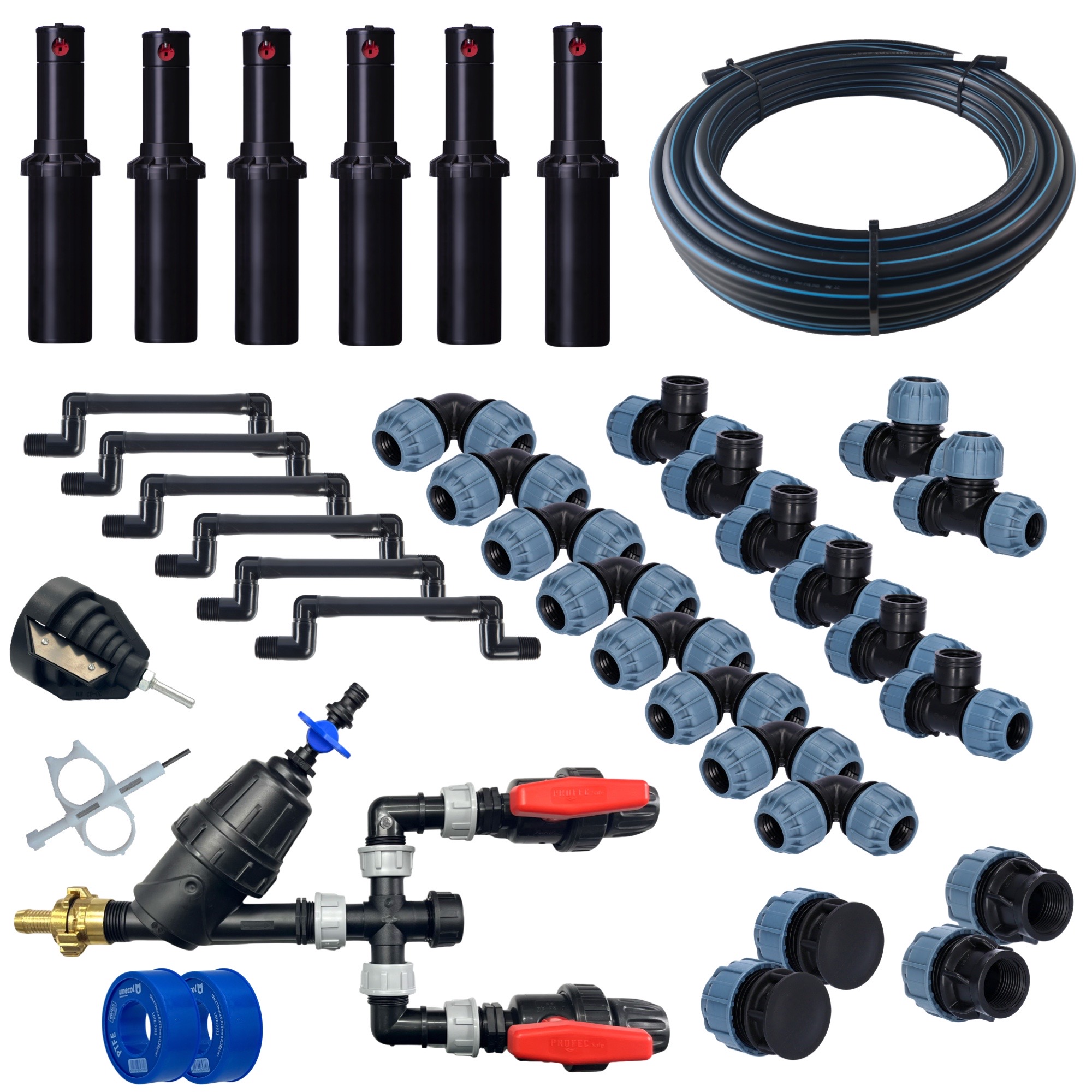 Dieses Bewässerungsset bietet eine schnelle und unkomplizierte Lösung für den Einstieg in die professionelle Rasenbewässerung. Es eignet sich ideal für kleinere Gärten oder für alle, die ihre Bewässerung zunächst einfach und schnell umsetzen möchten.