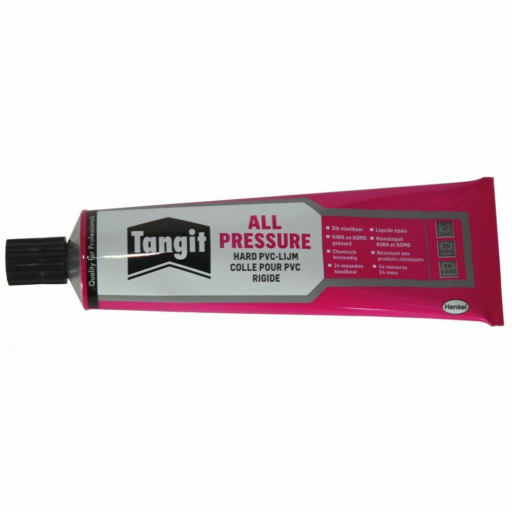 - Der Tangit ALL PRESSURE PVC-Kleber eignet sich für die sichere Verklebung von Rohrsystemen, Muffen, Bögen, Endstücke, Rinnen, Endstücke, usw