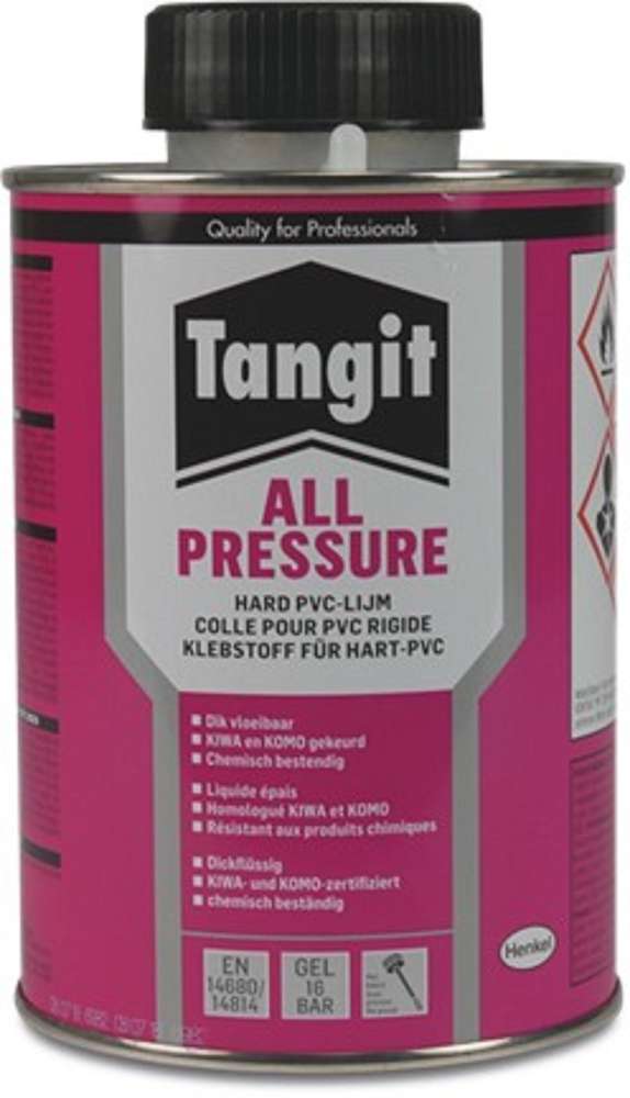 - Der Tangit ALL PRESSURE PVC-Kleber eignet sich für die sichere Verklebung von Rohrsystemen, Muffen, Bögen, Endstücke, Rinnen, Endstücke, usw